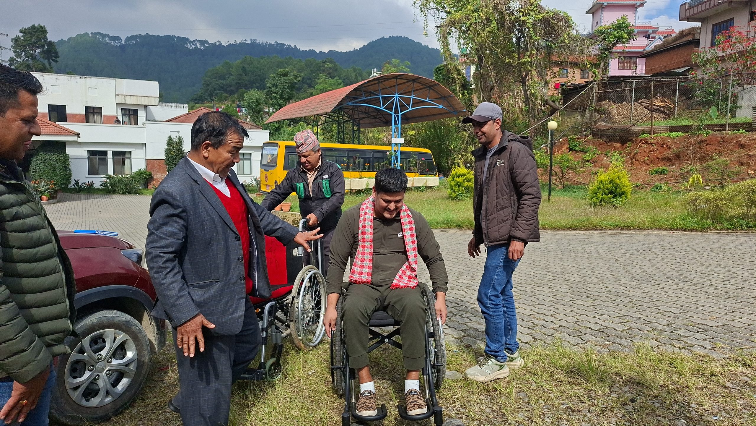 ‘हजुरलाई नमस्ते’ परोपकारी संस्थाका अध्यक्ष डा. तारा बहादुर कुँवरको समन्वयमा समाजसेवी जिएन सापकोटा, सुरज मकै, राजु खत्रीलगायतको उपस्थितिमा गरिएको कार्यक्रममा थापालाई संस्थामार्फत ह्विलचेयर प्रदान गरिएको हो।