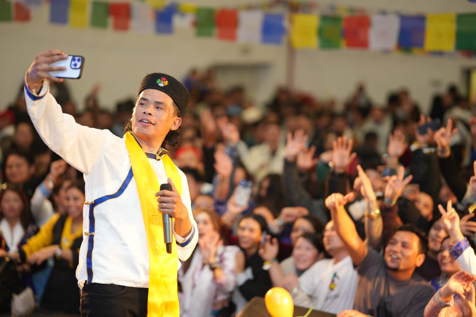 सांगितिक प्रस्तुतीको क्रममा प्रशंसकहरूसँग सेल्फी खिच्दै चर्चित गायक उर्गेन दोङ